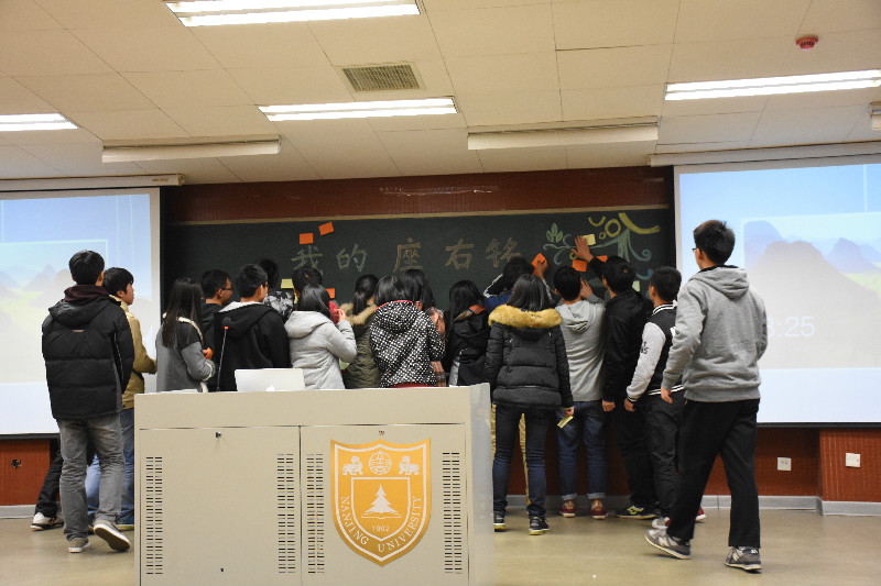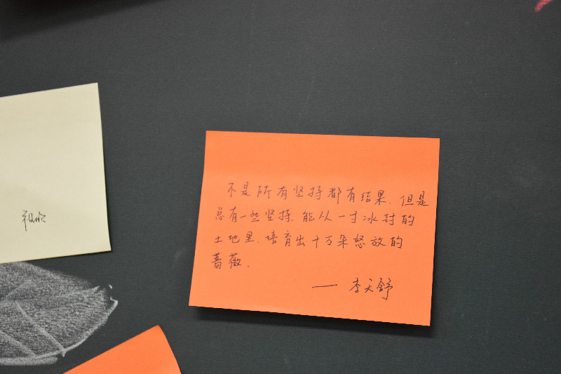 活动的现场同学们再一次写下自己的座右铭,并纷纷走上讲台郑重的贴上纸条——神圣的宛如珍宝的誓言。