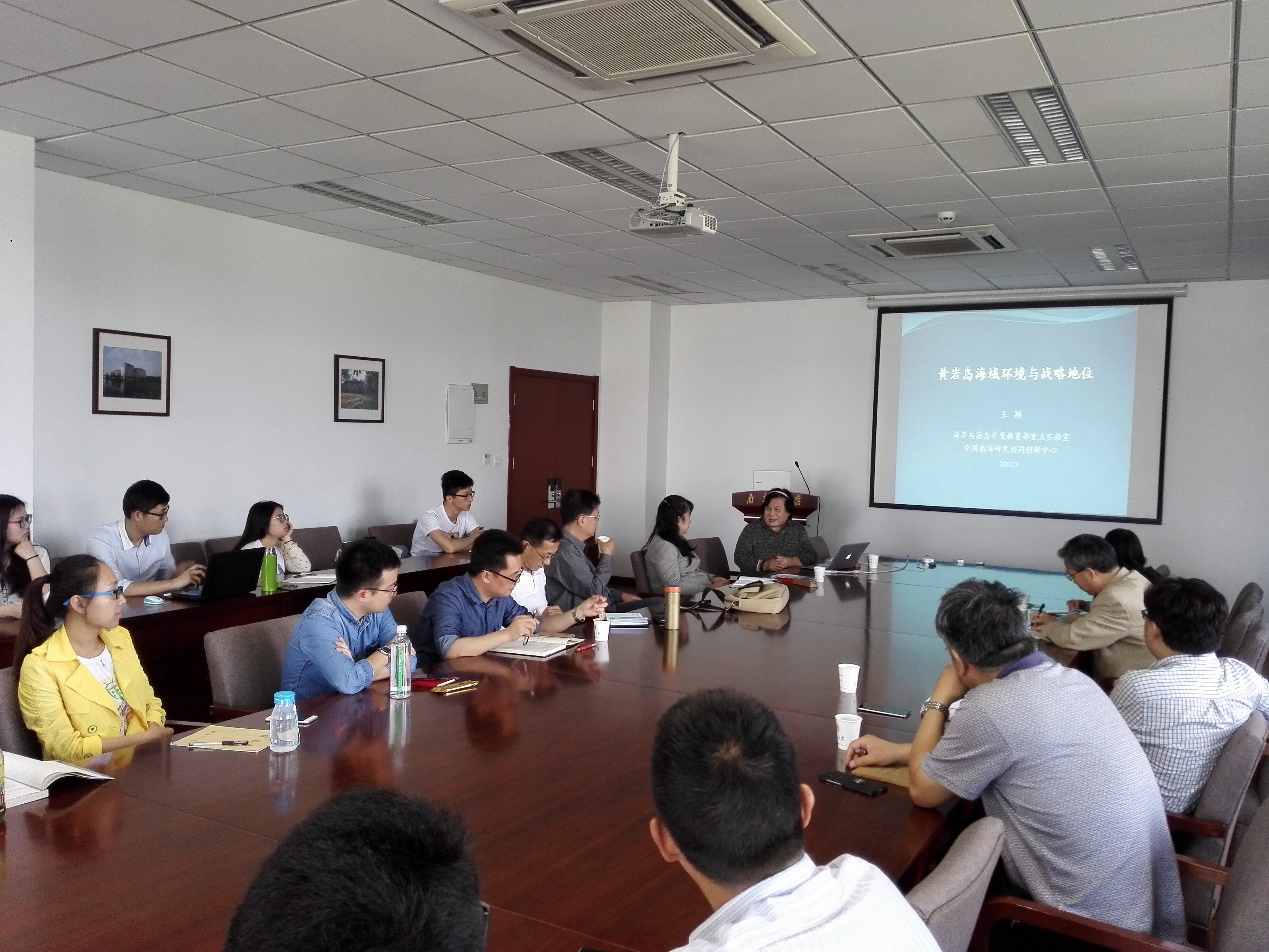 5月12日下午,“南海研究专题”115周年校庆暨5.20科学报告会在bl动漫 举行。中国南海研究协同创新中心主任、bl动漫 王颖院士,邹欣庆教授、葛晨东教授以及唐盟、权昊、刘晓瞳等三位研究生分别介绍了近期在南海考察与研究方面的工作进展和新认识。会上,王颖院士就“黄岩岛海域环境与战略地位分析”作了主题报告,介绍了黄岩岛的海域环境、历史争端回顾、战略地位以及我国应对黄岩岛问题上的态度,引起师生对我国南海争端的关注。邹欣庆教授报告了“南海的非传统安全问题”,从另一个角度展示了南海海域存在的安全问题,并呼吁在对待非传统安全的态度上应从“响应”向“预防”进行转变,这对维护我国南海生态健康持续发展具有重大意义。葛晨东教授报告了“西沙永兴石岛风暴沉积特征”,展示了众多实测数据资料,为揭示南海风暴沉积特征提供了有力依据。唐盟报告了“南海海疆国界线的科学依据”,展示了我国南海海底地貌与划定海疆国界线之间的关系,从地理学视角为南海海疆国界线划定提供了理论支持。权昊报告了“南沙三角礁与牛轭礁比较研究”,结合卫星遥感图像对比,分析了九章群岛牛轭礁出露珊瑚沙岛的变化趋势,并讨论其与三角礁在地貌及环境上的区别。刘晓瞳报告了“西沙群岛东岛潟湖沉积物碳、氮元素地球化学特征及其指示的环境变化”,通过西沙群岛东岛潟湖柱状沉积物的沉积特征及碳、氮元素地球化学特征,反演了东岛百年尺度以来的环境变化。本次报告会吸引了50余人参加,与会人员对上述报告进行了热烈讨论。