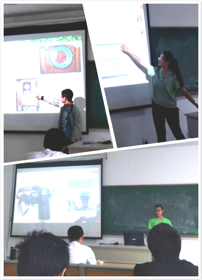 徐翊宸同学介绍了相机的变迁,她展示了从1990年到现在家里使用过的五代相机。1990年的海鸥牌相机,需要手动设置一切参数、手动对焦,闪光灯也需要单独连接到相机上,拍摄准备时间极长;2001年的凤凰牌“傻瓜相机”,不需要设置参数,使用更简便,但仍需要胶片冲印;大约2005年,她们拥有了第一代数码相机,从此,家里不再有胶片,而是把照片全部保存在电脑里。之后,又有了第二代数码相机,和第一代简易数码相机不同的是,它可以通过调焦拉近和被摄物之间的距离,因此可以拍摄更远的物体和风景。现在,家中使用的是单反相机,它的WiFi功能可以直接将拍摄的照片导入手机,为如今兴起的朋友圈晒照提供了便利。