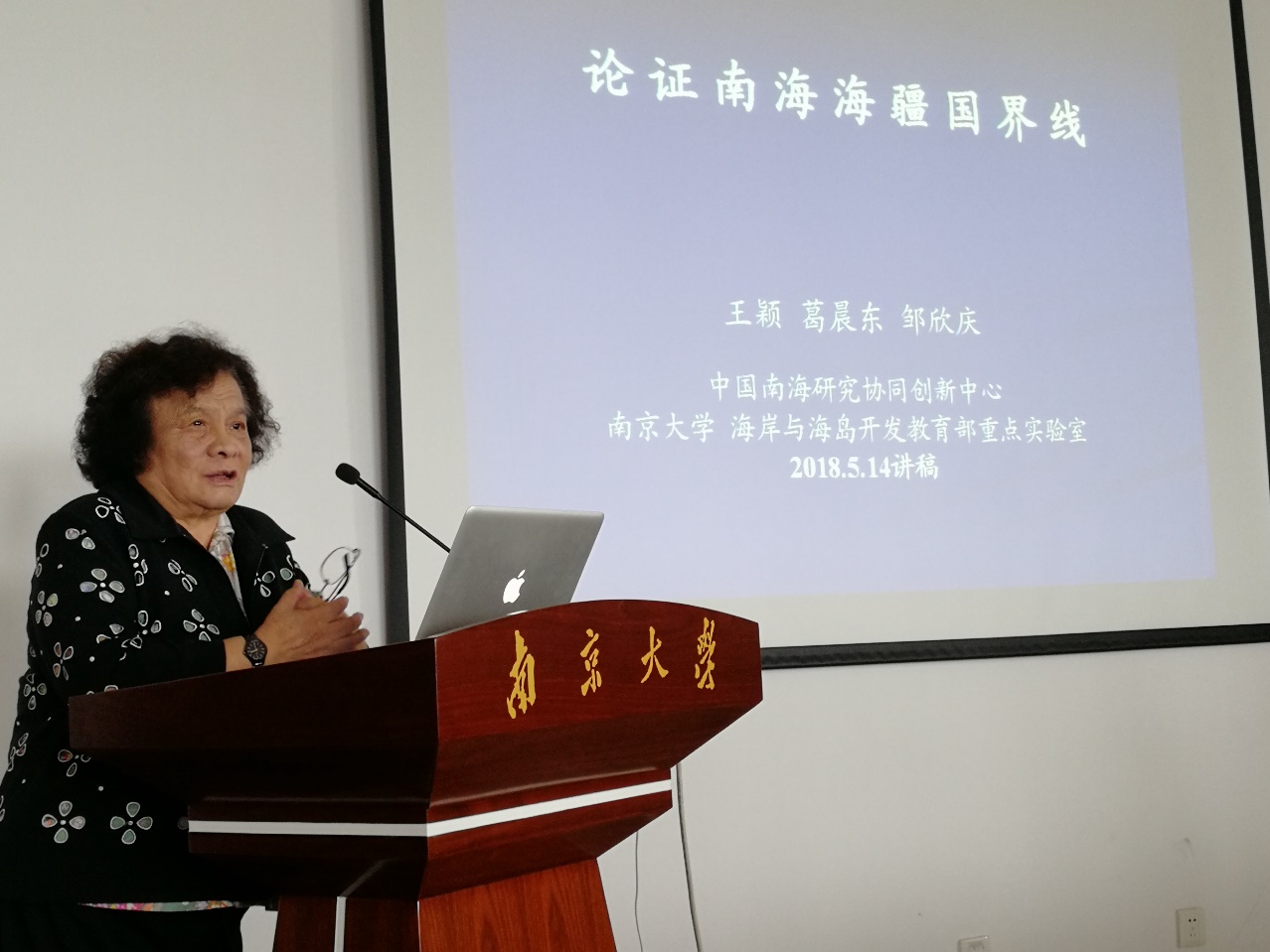 葛晨东教授就南海断续线作补充报告,通过国内外图件指明:用“九段线”“十一段线”等数字命名南海断续线不准确,以断续线标示水上界线是国际惯例。並通过二战时日本投降文书及1952年日本外务大臣冈崎胜男所推荐《日本标准世界地理图》上的标注证明我国对南海的开发并非拓展领土而是收复领土,南海是中国的领土。最后,向同学们展示其2016年赴南海群岛、西沙群岛考察照片。