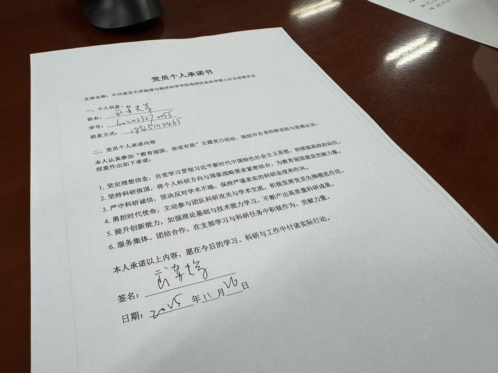 活动最后,全体博士生党员现场签署了《科研诚信与科研责任承诺书》,一致承诺严守科研伦理、恪守学术规范,共同营造风清气正的科研环境。现场共收到签署承诺书35份。