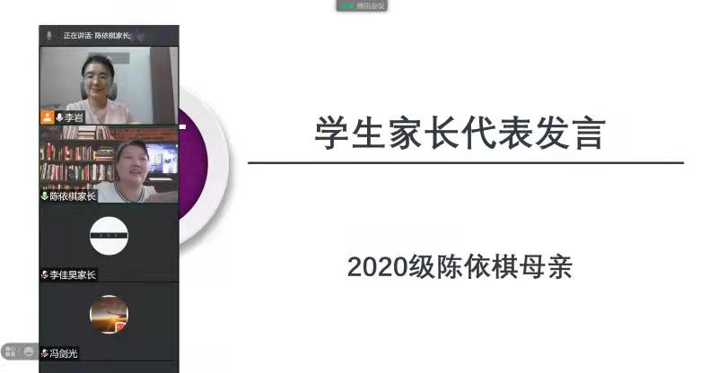 2020级陈依棋同学的母亲作为家长代表发言,她分享了自己的教育理念,希望同学们充分利用学校和学院提供的平台与机会,不断学习、积极进步。她还为学院送上了真挚的祝福,充分表达了家长对学院的信任与支持。