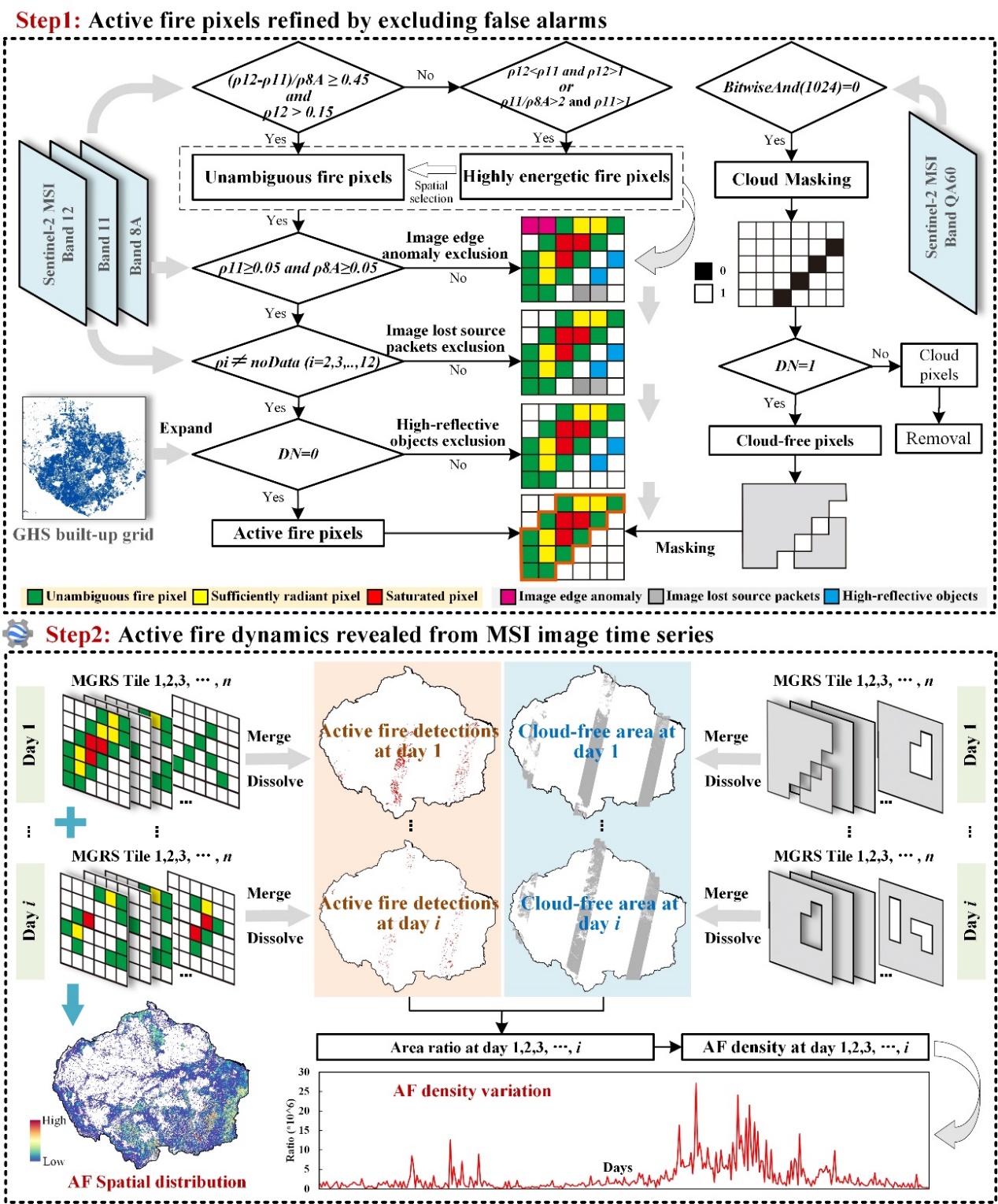 图1 基于云计算平台、时间序列Sentinel-2 MSI的火点清单生产流程