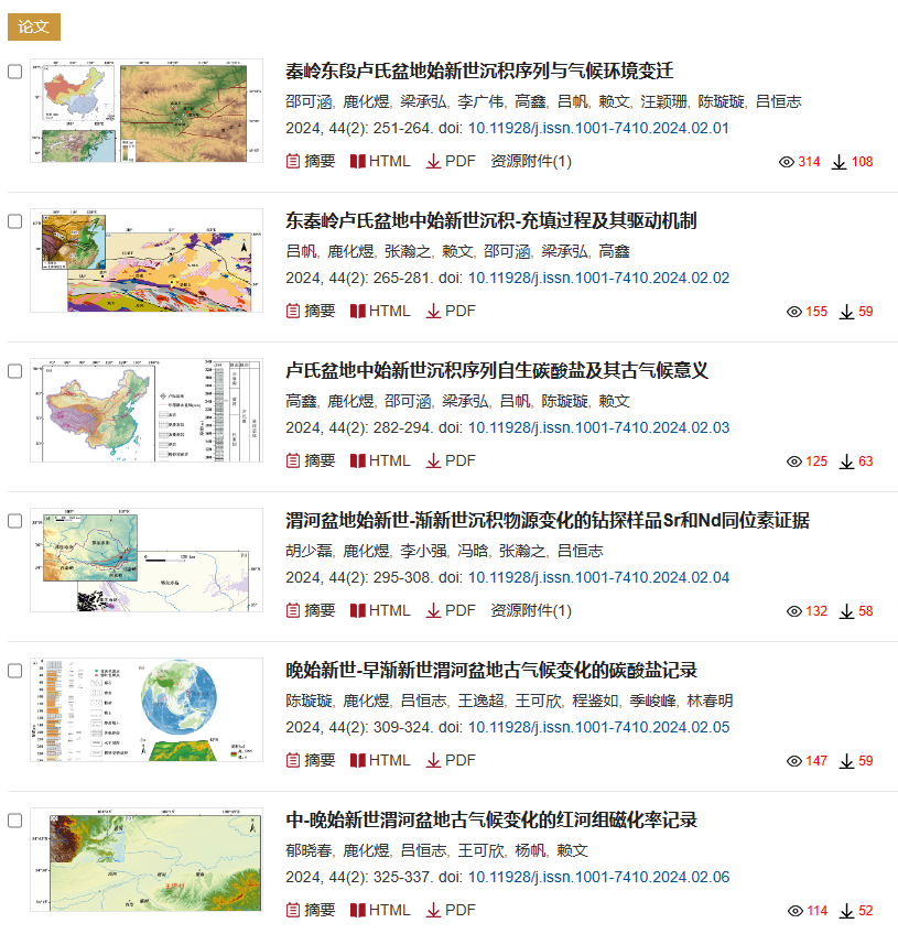 图2. 当期《第四纪研究》专题论文目录