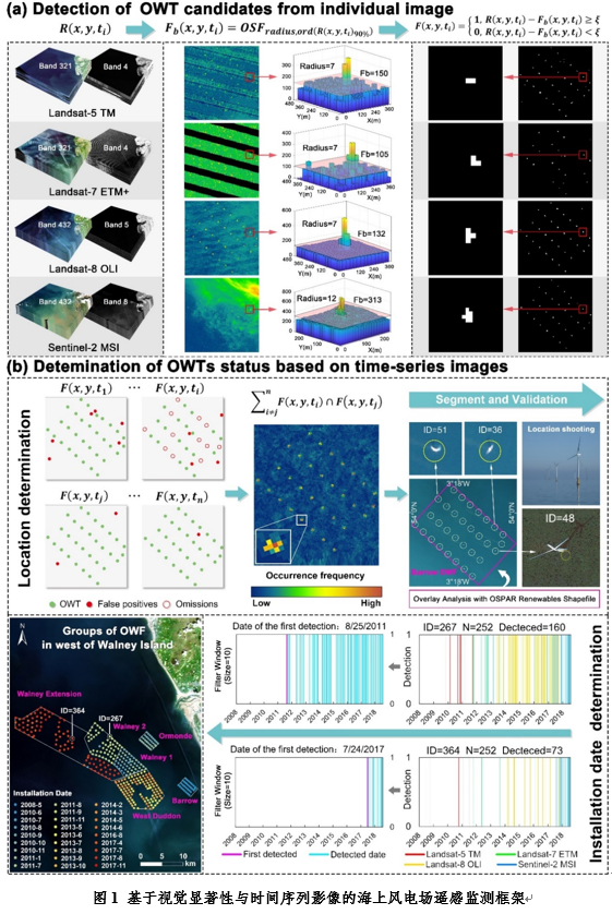 海上风能资源已成为全球绿色、可持续发展的重要引擎。全面、详尽地掌握海上风电场的分布与状态对保障近海航行安全、维护海洋生态多样性、科学评估和管理风能利用、促进社会经济可持续发展等至关重要。然而,海上风电场的信息极少公开和共享,同时因其分布范围广,海况复杂,实地调查成本巨大。因此,如何快速、高效地动态监测海上风电场,填补信息孤岛是亟需解决的难题。