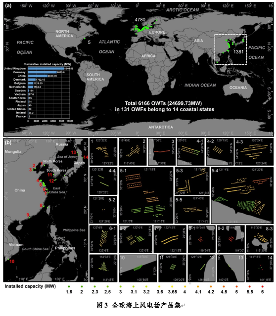 该研究展示了多源时序遥感影像在大范围、高价值、小目标监测方面的潜力和优势,进一步加深了对海上风电场空间格局和发展趋势的认知,为更精准的风能资源利用和新能源产业布局提供了强有力的数据支撑,对于海上航行安全和海洋环境保护等均具有重要意义。