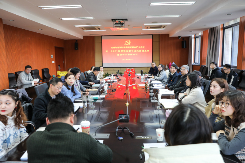 李满春在总结点评时指出,各党支部深入学习贯彻习近平新时代中国特色社会主义思想、党的十九大和十九届历次全会精神,结合党史学习教育开展了丰富多彩、生动活泼的主题活动,并能把党建和支部的中心工作有机地结合起来,可圈可点。各党支部书记在履行抓党建工作“第一责任人”方面有了长足的进步,按照中央“七个有力”的要求,围绕中心工作服务大局、联系党员和群众,发挥党支部战斗堡垒和党员先锋模范作用,成效显著。他号召,各支部在新的一年要心怀“国之大者”,提高政治站位,主动担当作为,继续真抓实干,严格落实学院党委提出的各项要求,进一步做到党建和中心工作双融合双促进,为建设“第一个南大”和“地理海洋一流学科”提供强有力的组织保证。