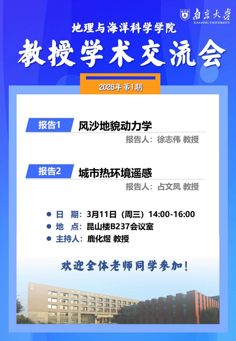 【讲座信息】教授学术交流会(3月11日下午)
