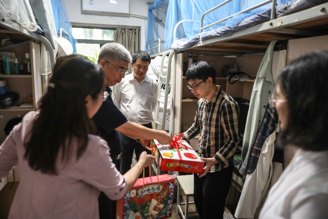 据悉,座谈会结束后,学院领导与教师代表前往学生宿舍13栋、2栋、5栋进行走访慰问,融入学生日常生活,实地考察学生宿舍的基础设施和居住环境,为同学们送上暖心礼物,询问学生校园生活和学习情况,鼓励同学们遇到问题多与老师们沟通交流。同学们纷纷对老师们的到访表示感谢,并表示会延续百年传承,以热情、高昂、自信的姿态迎接未来的学习与生活。