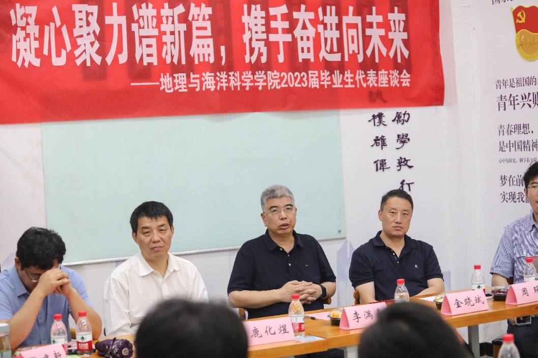 随后,李满春表示学生有需求、学院就会有落实,大家提出的建议都将进一步讨论和落实。接着,李书记提出学生时代的友谊将是大家人生中的宝贵财富,地理学院也将永远是大家的避风港湾。最后,李书记提出社会是最好的课堂,在座的各位毕业生也许会经历更多的大风大浪,希望大家可以经得住考验,不惧未来、砥砺前行。鹿化煜表示各位同学有的奔赴选调岗位、有的出国深造、有的工作就业,但bl动漫 是一个“永恒弥久”的地方,这里有延续百年的知识传承、志同道合的良师益友,地理学院永远是大家的依靠,希望大家能够在各自的岗位上发光发热,前程似锦。