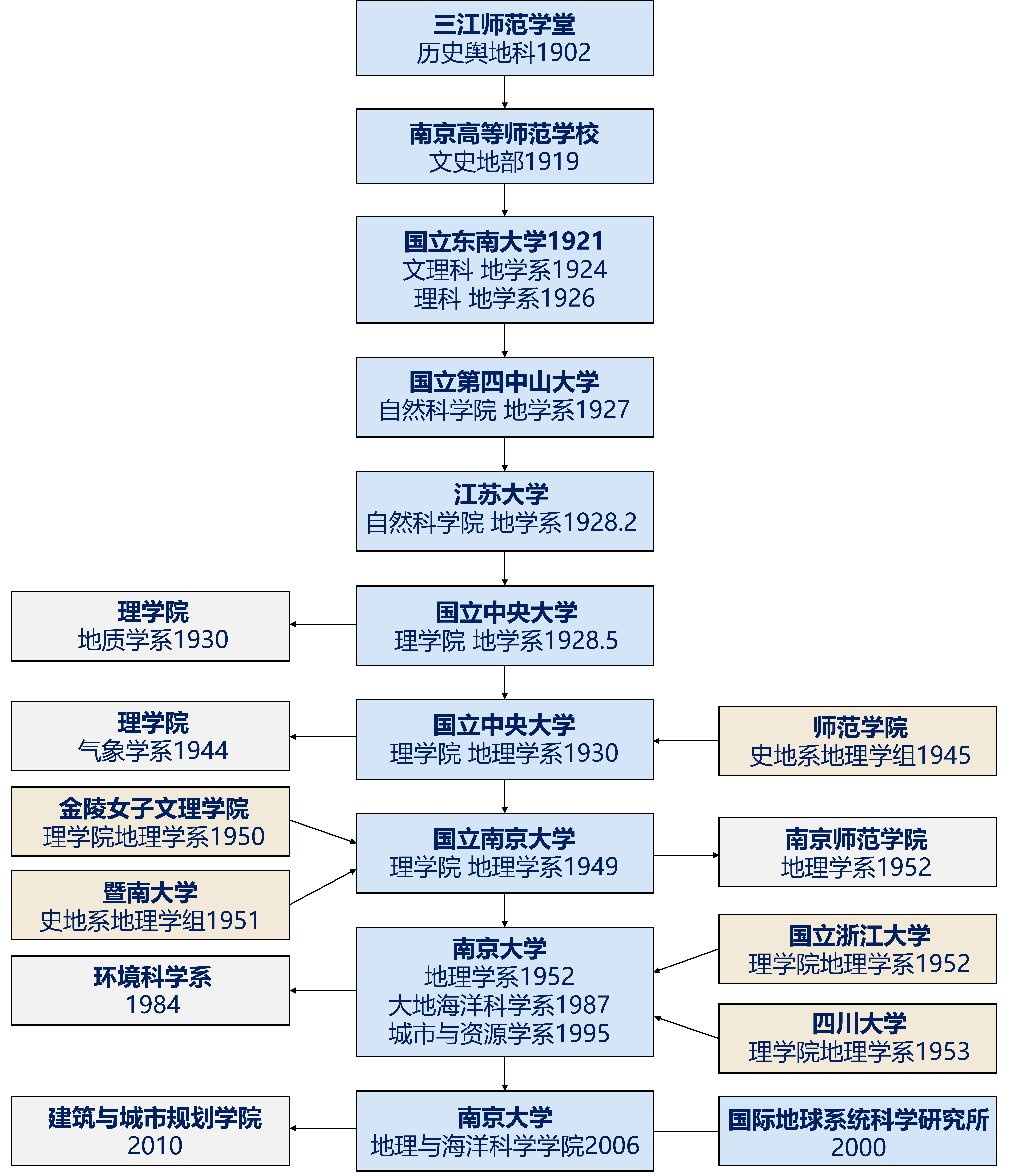 bl动漫 地理学科办学历史源远流长。1902年三江师范学堂设立历史舆地科,1919年南京高等师范学校设立文史地部。bl动漫 地理学科历史沿革如图所示。