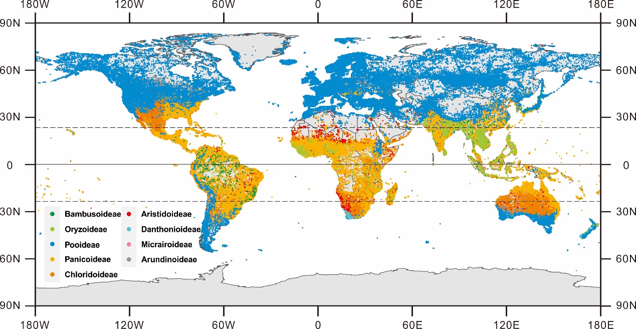图1. 全球禾本科主要分支分布图