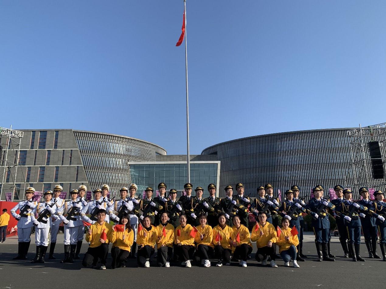 升旗仪式于7时整准时开始,英姿飒爽的国旗护卫队迈着铿锵有力的步伐,庄严地护卫着国旗走向国旗广场。《义勇军进行曲》奏响,在场师生集体行注目礼,齐唱国歌,五星红旗冉冉升起。
