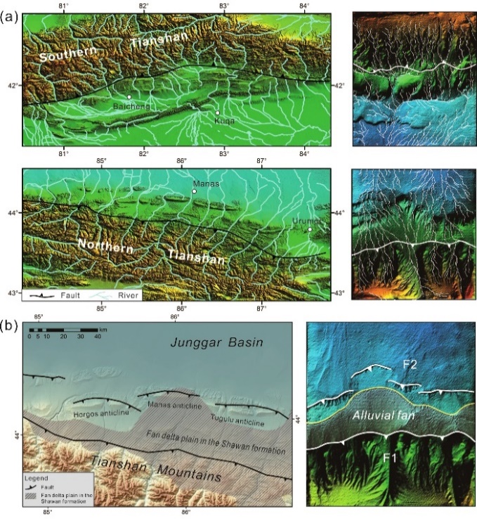 构造变形和地表过程的相互作用的过程与机制是地球系统科学关心的热点问题,构造变形影响地表过程,而地表侵蚀和堆积过程通过地壳均衡作用,也对构造应力的分布、构造变形的样式等产生了反馈作用。褶皱冲断带和相邻盆地是地表侵蚀与地壳变形相互作用的重要场所。前人提出强烈的降水、侵蚀或冰川作用与岩石快速隆起存在空间相关性。与大尺度的构造相比,中等尺度的构造差异会引起河流形态的多样性和沉积物输移的变化,反之对新生构造的形成带来影响。在中尺度的褶皱冲断带背景下,构造变形如何响应河流水系演化和沉积物分布并不清楚。