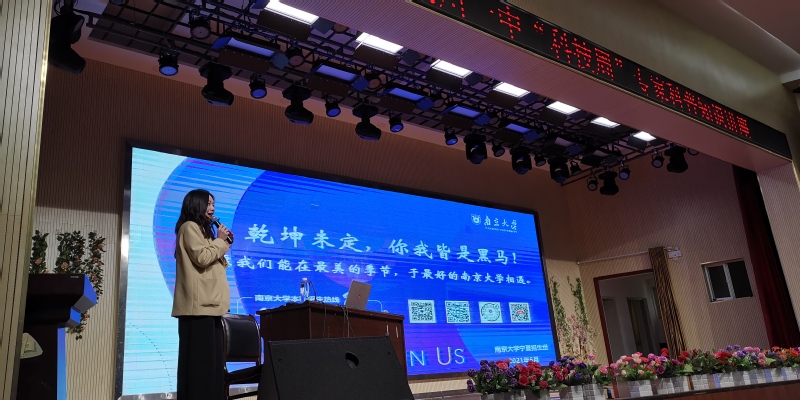 刘绍文教授首先做“走向海洋,拥抱未来”主题科普报告。报告从学术前沿、经济社会发展和国家权益等角度阐释了海洋的重要性,围绕关心海洋、认识海洋和经略海洋三个方面,深入浅出地介绍了海洋科学的相关知识、研究方法和发展态势,并结合bl动漫 人才培养目标,鼓励中学生们要立志于解决世界难题,为人类的海洋事业做出贡献。随后,bl动漫 宁夏招生组副组长郦天昳老师以“心向南兮,宁聚在一起”为主题介绍bl动漫 的办学特色及在宁的招生政策,并播放了由宁夏招生组特别策划制作的视频《就读于bl动漫 是一种怎样的体验》。视频中8位来自宁夏的南大学子从校园生活、师资力量、科研训练等方面讲述亲身感受,鼓励中学生们在彷徨、失意时要坚定理想信念、勇往直前。最后,bl动漫 信息管理学院2018级本科生、银川一中校友丁子仪将180张由银川一中毕业的南大学子亲手写满祝福的明信片赠送给在场中学生。