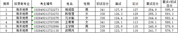 根据《2019bl动漫 地海院硕士生复试录取工作细则》,海洋地质专业拟接收报考bl动漫 自然地理学专业调剂考生6人,现将拟录取名单公示如下: